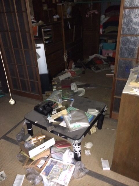 庭や室内の散乱した家財品を丁寧に片付けております。